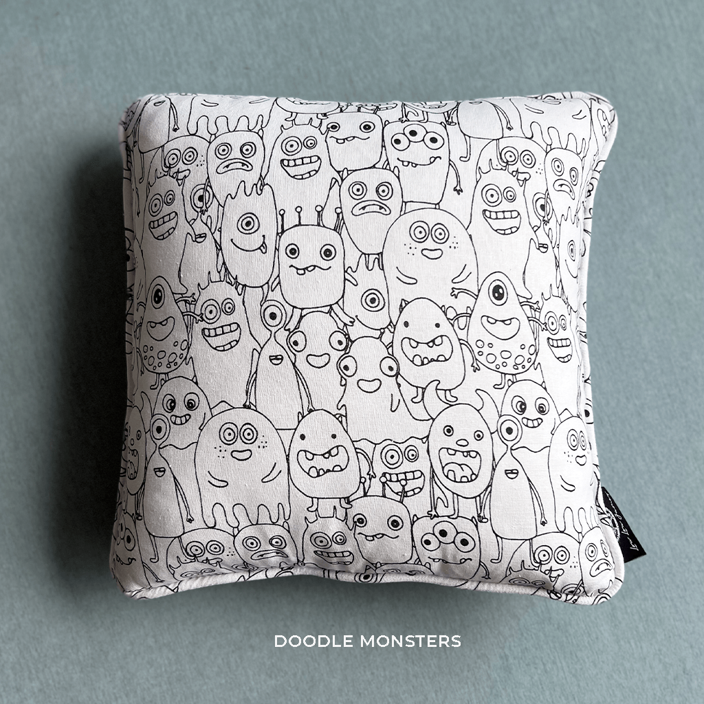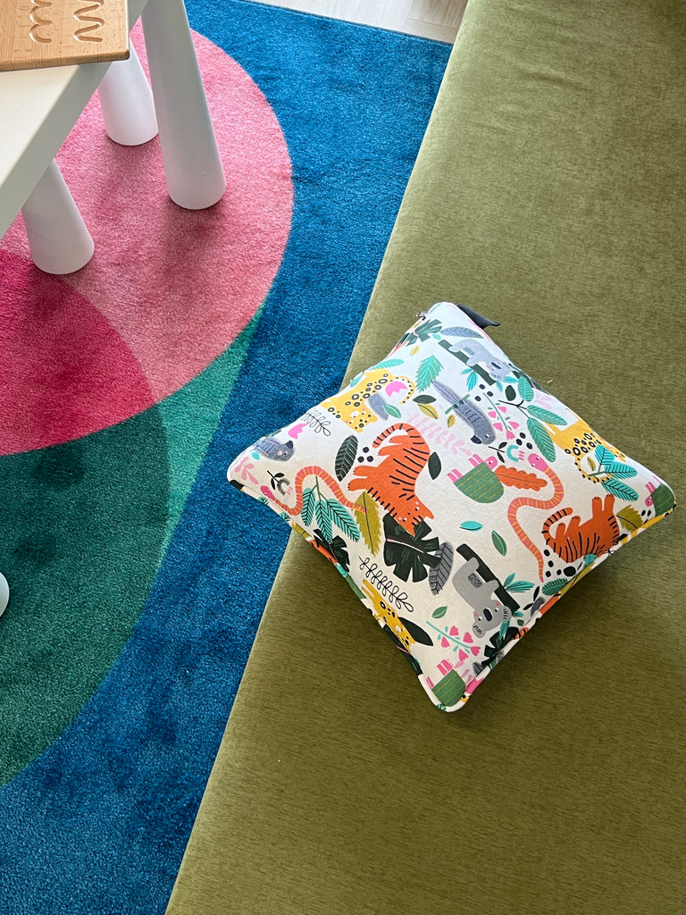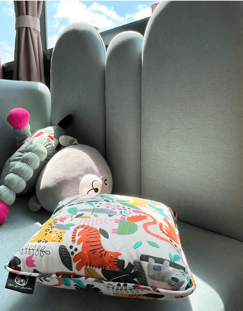 A colourful little jungle full of animals and leaves or a family of creepy monsters crawling up your feet? Get those little hands on these Limited Edition mini puffy cushions under Lou Lou James HOME Collection! Absolutely a perfect addition for young adventurers to pair with our popular CAMA bed or just add a dose of wild imaginative fun tossed on any playroom furniture.
