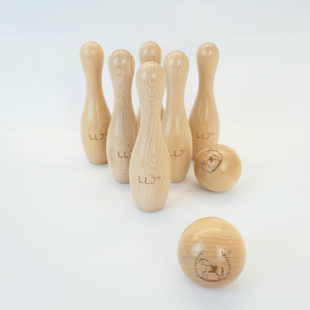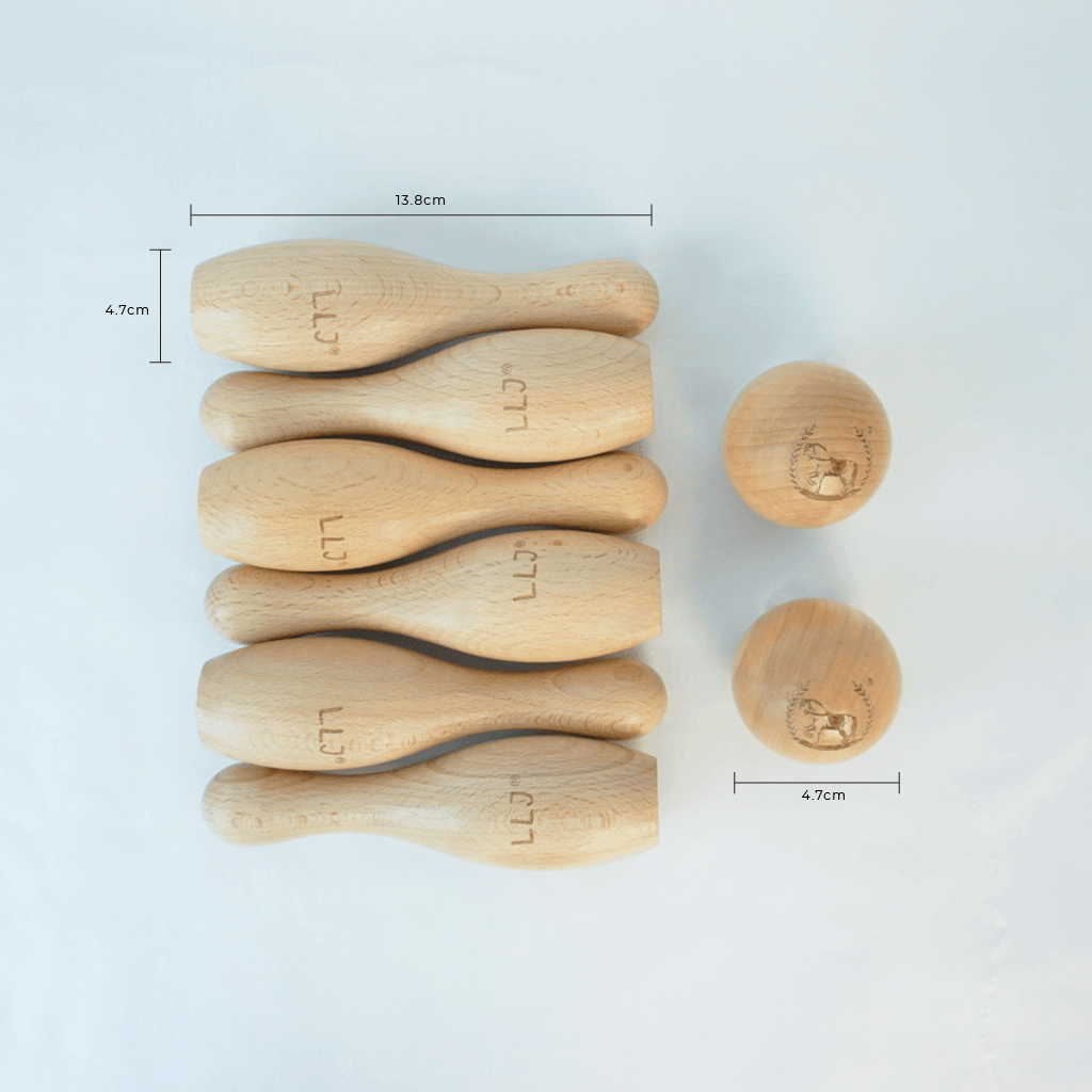 A fun yet classic addition to your child’s playtime! Discover the beauty of ancient sports with our sustainable Wooden Bowling Set, this miniature bowling game comes with 6 wooden pins and 2 wooden bowling balls - conveniently packed in Lou Lou James® Multipurpose Keepsake Pouch for easy storage and on the go!