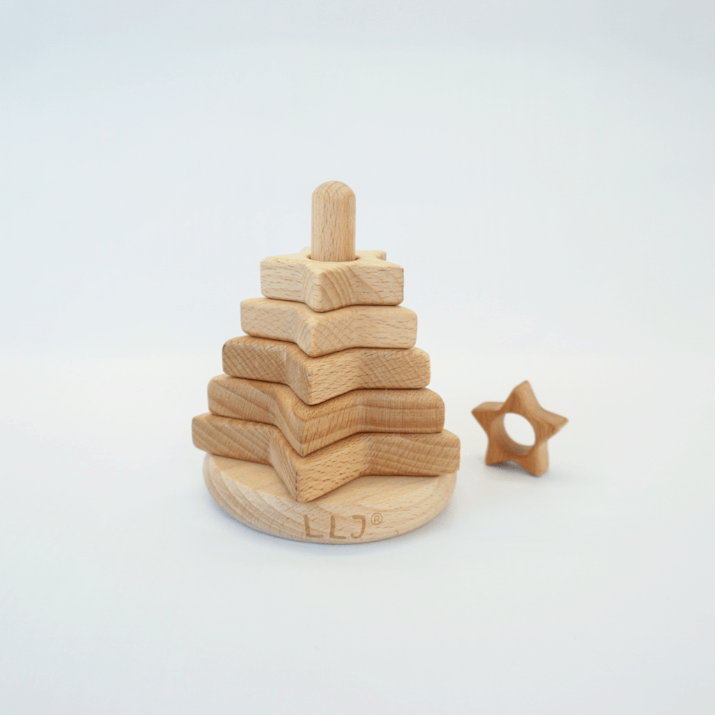 Timeless and sustainably beautiful, this set of baby stacking tree features natural beech wood construction. Safe and so much fun for all ages, it's a wonderful gift for baby showers and even first birthdays. When this classic baby toy is not in use, you'll absolutely love displaying it on a shelf in the nursery or a transitioned toddler’s room!